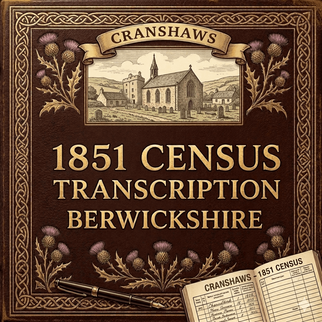 A hard copy census transcription booklet for Cranshaws, Berwickshire from 1851. Indexed by Graham Maxwell Ancestry.