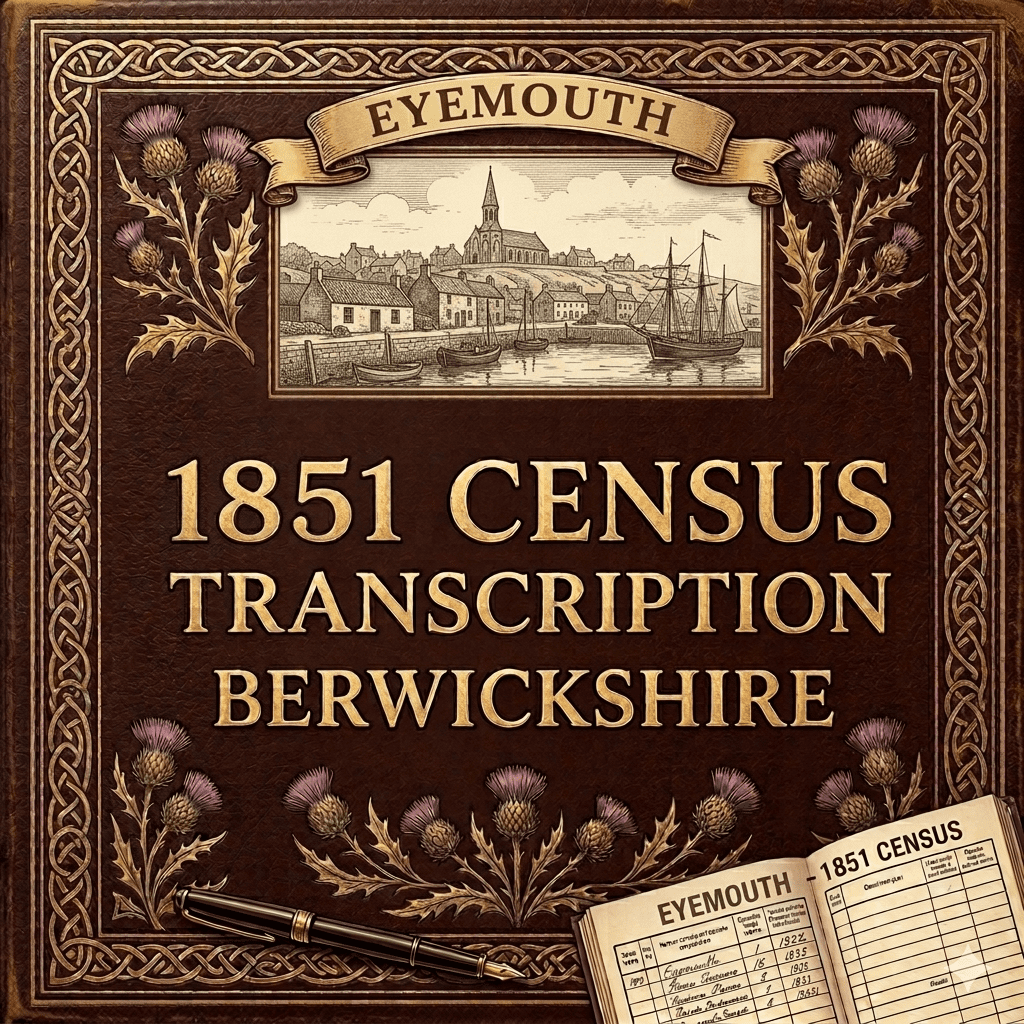 A hard copy census transcription booklet for Eyemouth, Berwickshire from 1851. Indexed by Graham Maxwell Ancestry.